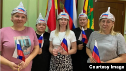 В итоге педагоги семи образовательных учреждений России провели мастер-классы по изготовлению шапочек из фольги "для защиты от спутников НАТО", клеили на шапочки ленты в цветах триколора и позировали в них на камеру, называя это "интересным и творческим занятием".